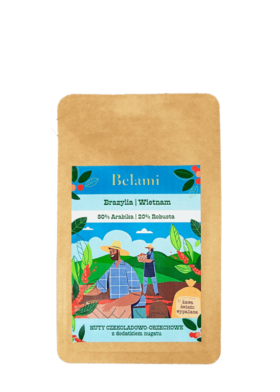 De verpakking behoudt de versheid van de koffie – deze is uitgerust met een eenrichtingsventiel dat zorgt voor het behoud van de versheid, het ontgassen van de koffie na het branden en tegelijkertijd voorkomt dat er lucht in de verpakking komt.